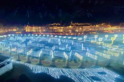 幅60m滝のような光のオーロラガーデンは
