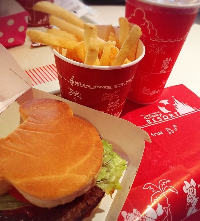 ハンバーガはミッキーの形をしていて