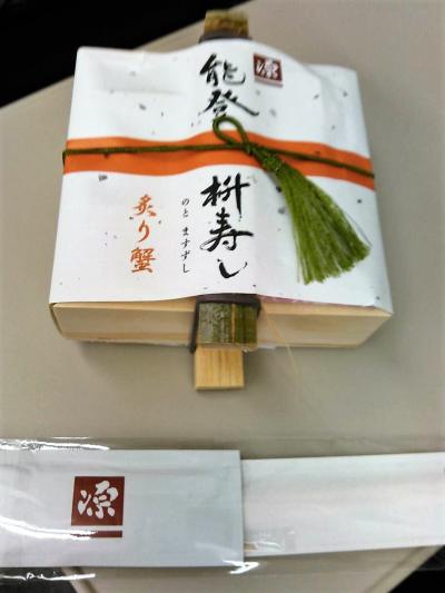 小さな柿の葉の包まれたお寿司の詰め合わせを