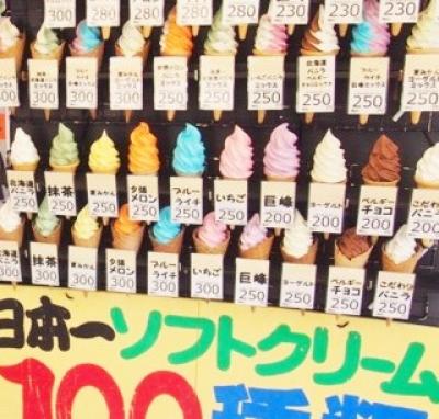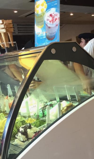 ショーケースには芸術品のようにたくさんのフレーバーが並んでいて