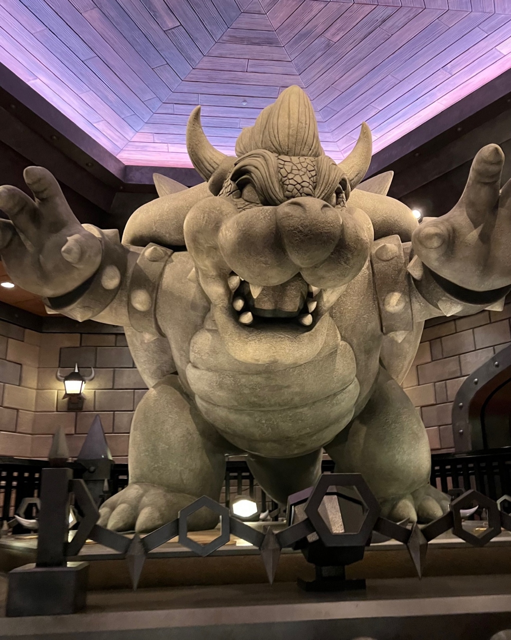 クッパ城に入ると大きなクッパの石像が待ち受けています。