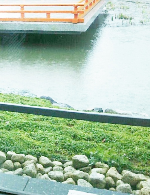 舞台が池に浮かんでいるかのようなで、