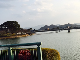 西中洲の道路沿いで店内窓側はガラス張りで夜は夜景がきれいです。