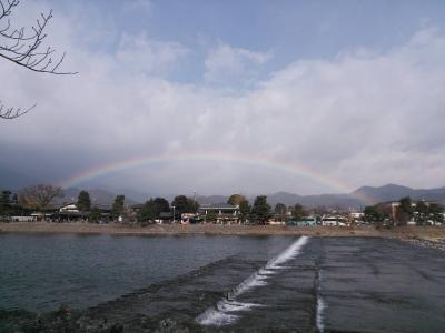 紅葉も過ぎた冬だったのでそこまで混んではいなかったが橋の途中途中で写真を撮っている人が多かった。混んでいる時期は渡るのが大変そうな気がする。朝少し雨が降ったようで橋に虹がかかっているところをちょうど見れたのでよかった