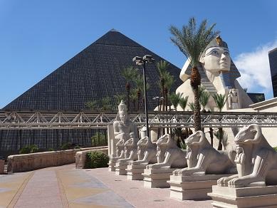 宿泊はしませんでしたが、見るだけでも楽しいホテル。エクスカリバーホテルからトラムに乗って行ってみてください。トラムの駅を降りると、エジプトに到着したような写真が撮れますよ。建物の中はとても現代的ですが、エジプト風の飾りもあって、楽しいです。