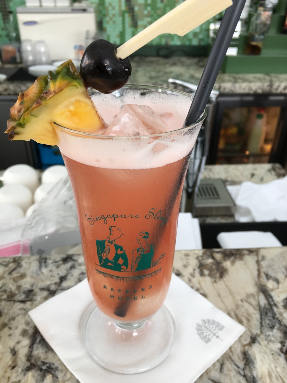 ことができました。朝食もここで取れるそうです。ロングバーも、もちろんシンガポールスリング以外も美味しかったのですが、一般の人もたくさん来られるので大変賑やかに混み合っているので、ここの方が落ち着くな、と思いました。