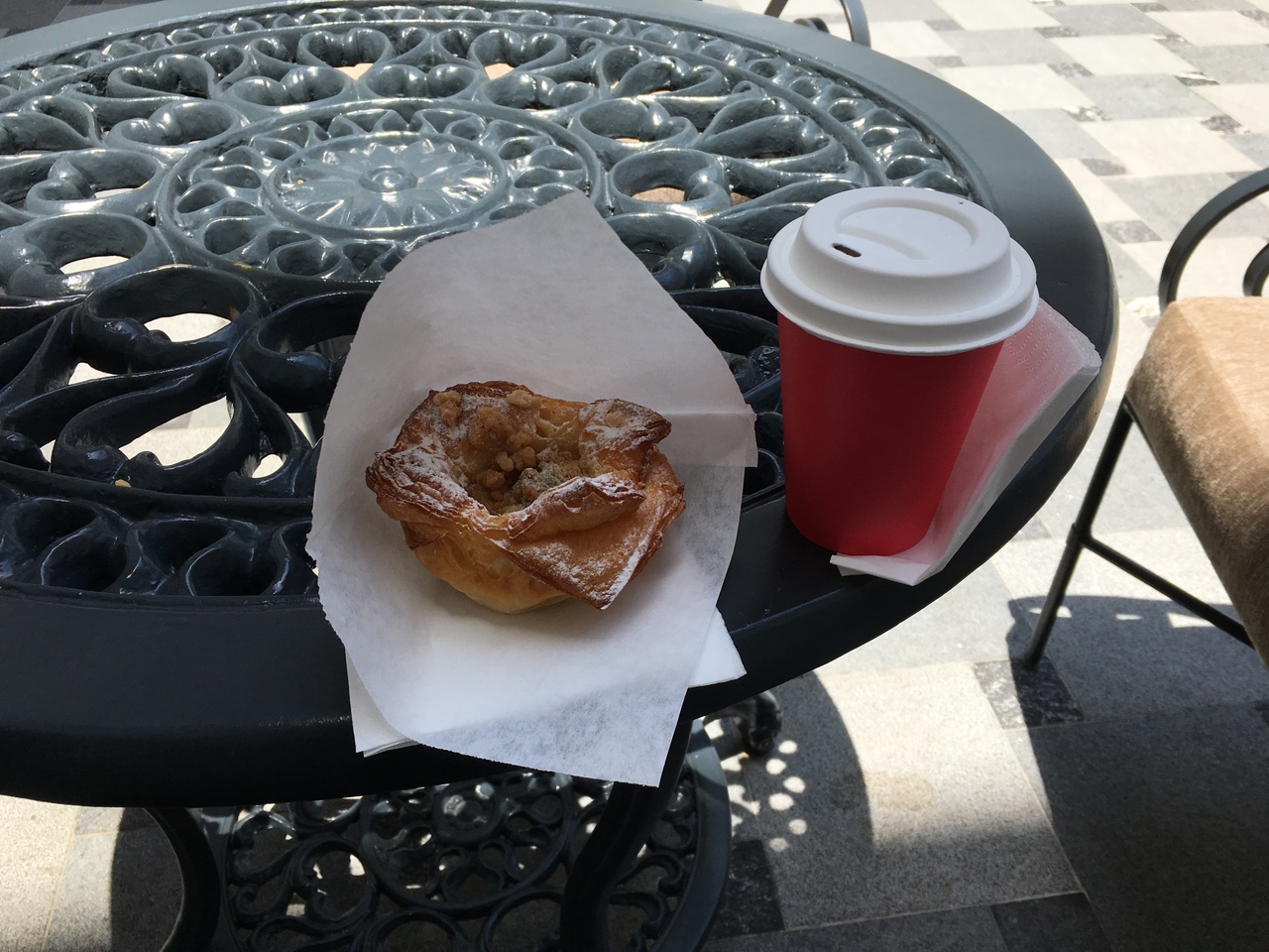 店内にイートインスペースはないので、お店前の中庭のテーブルで食べるかテイクアウトです。