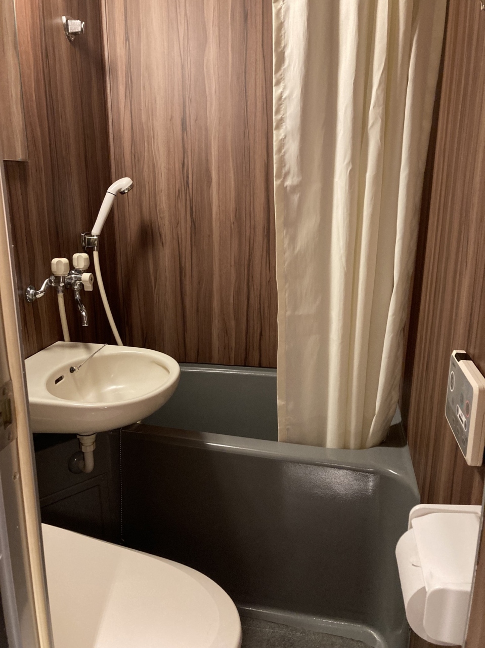 古めです。平日は5000円前後らしいですが、国技館でのイベント前日の金曜なので素泊まり約8000円。アメニティはお部屋になく、フロントで必要な物をもらいます。シングルルームは狭いです。部屋には荷物置きの台もなく、デスクも4・50センチ四方のがはじとはじに二つ。お茶やコーヒーはありません。ポットがありましたが、何故か5センチぐらい水が入ってたのはサービスなのか、前に泊まった人が入れたままなのか?気味が悪かったです。コップは蓋付き紙コップが一つ。照明はドア頭上のスポットライトとベッドのナイトスタンドだけ。デスクにも折り畳み(?)スタンドがありましたがライト部分が上を向けてもすぐに畳まってしまうので意味がなく、暗かったです。スリッパは使い捨てではありませんでした。