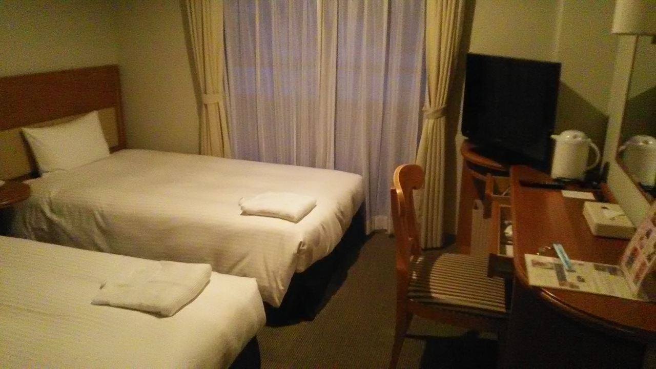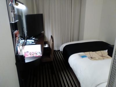 JALのツアーに入っていたので実質の宿泊料金は分かりませんが、飛行機代金と含めて3万3千円だったので、かなりお得にと泊まれたと思います。部屋は思ったほど広くはなくて、ビジネスホテルのシングルルーム並みでした。大浴場は11時までですが、締め切り間際は意外に人が多かったので早い時間のほうが空いてました。JR駅が近くてJRを使うには便利なのですが、西口側なので主な観光地やほとんどのバス停はほぼ反対の東口にあるので近くにあるのにちょっと風の強い外の通路を遠回りという、何となく不便さを感じました。ホテルからすぐ東口に降りられれば便利なのにな~。