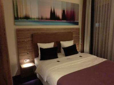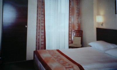 駅から歩いて5分ほどです。部屋は狭くも広くもなく、ちょっと古めのヨーロッパぽい雰囲気です。エレベータが中二階からなので、スーツケースの人はちょっと不便そうでした。