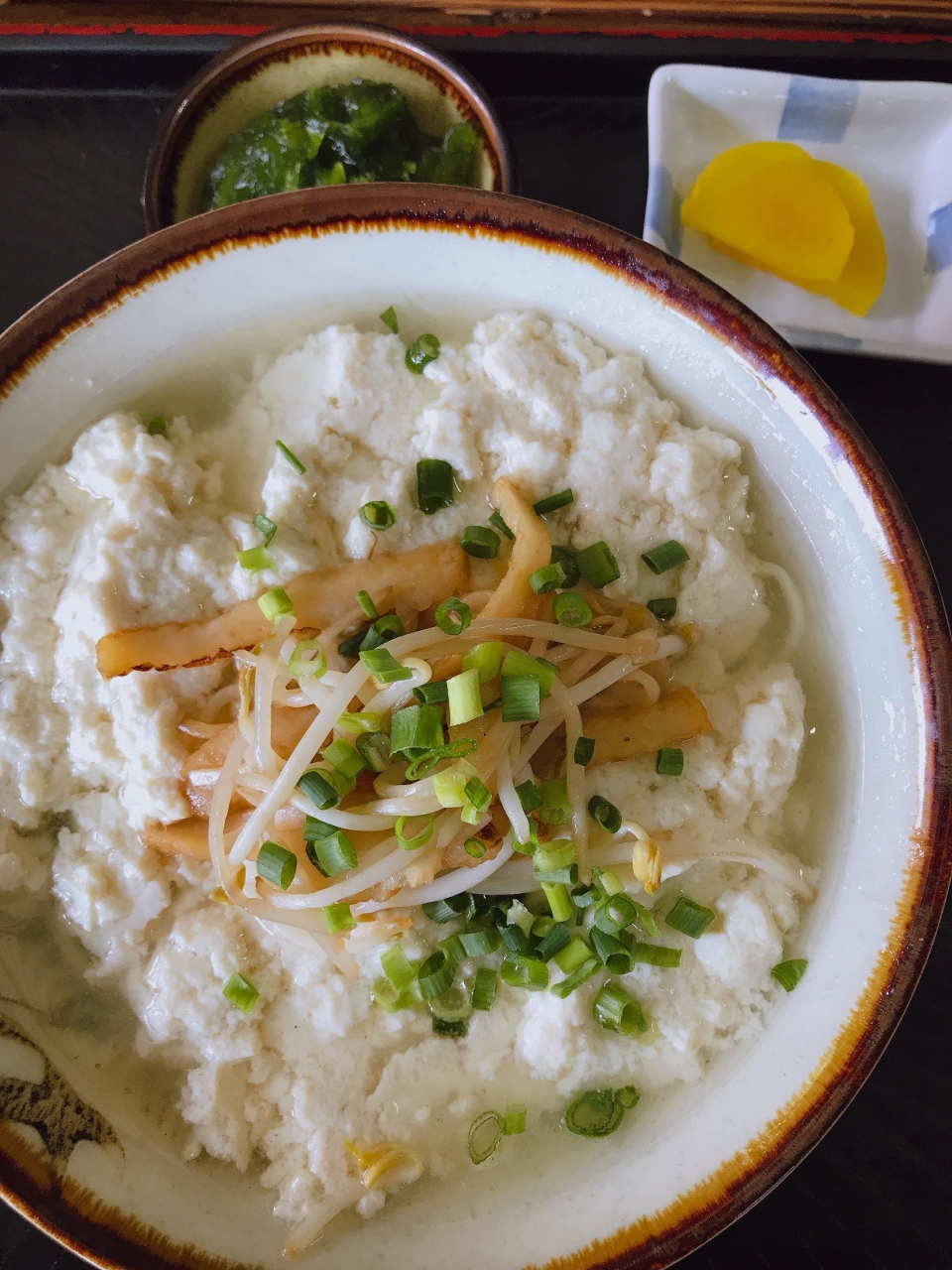 すこし香ばしい香りのゆし豆腐が、とろとろを口の中で溶けていき、美味しい。