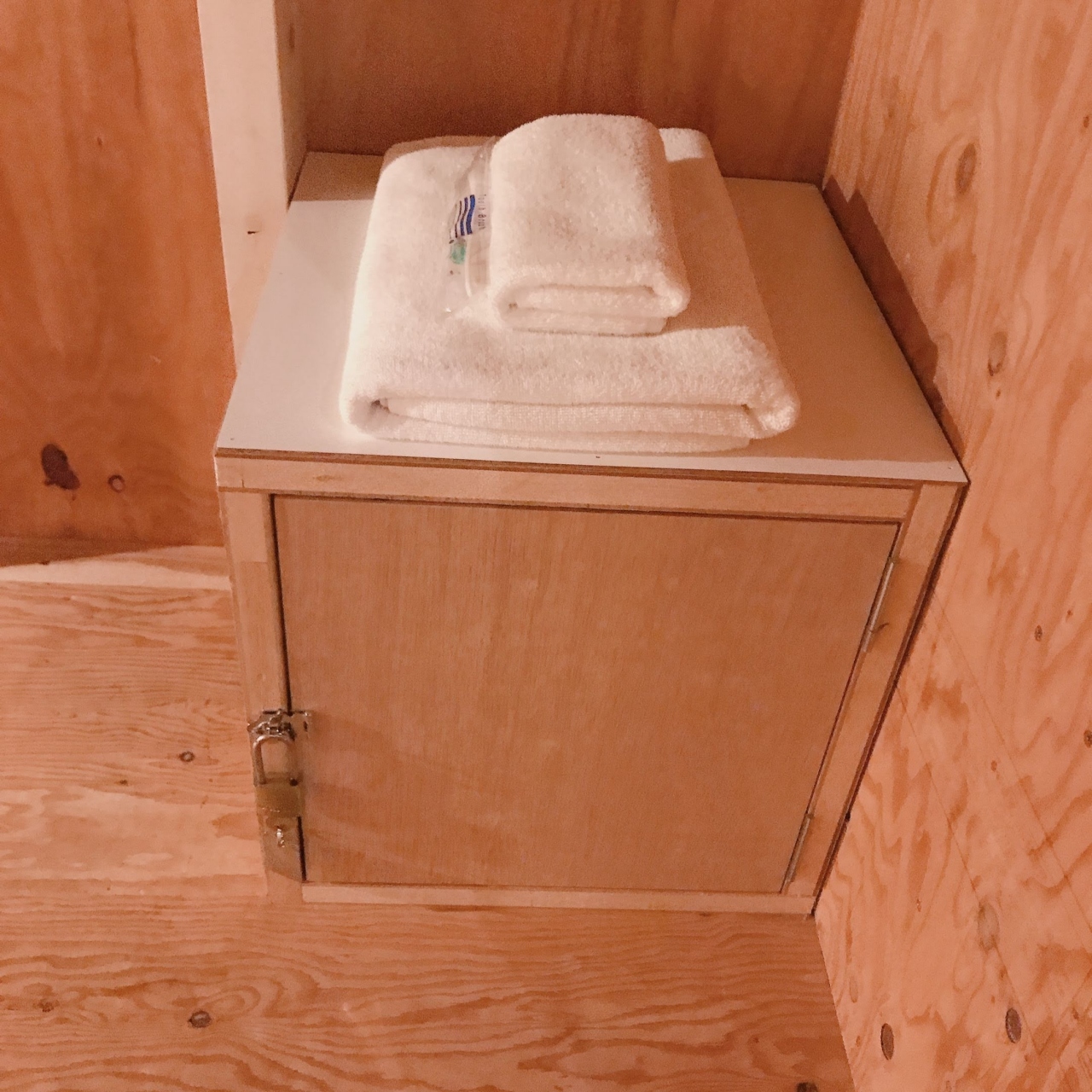 洗濯はコインランドリー(洗濯1回300円、乾燥機30分100円)も、男女別鍵付きのドライルームもある。