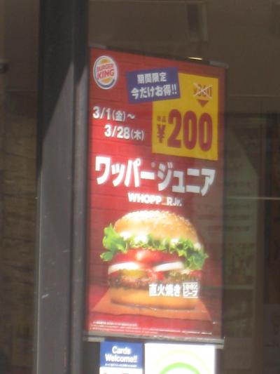 珍しく店舗ウインドウに「ワッパージュニア」の特価が、