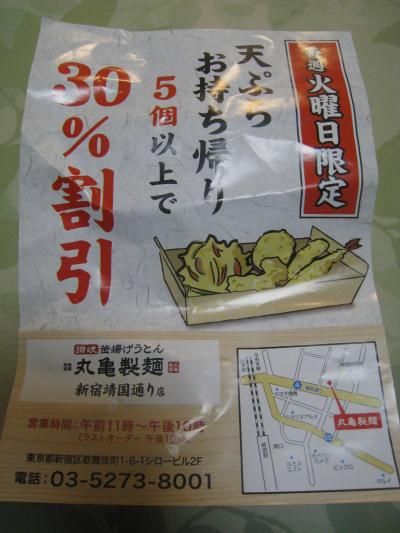 火曜日は天ぷらテイクアウトすると3割引きですが、