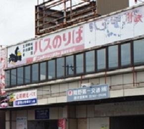 駅前のバス停留所から滝前まで乗車そして下車し、