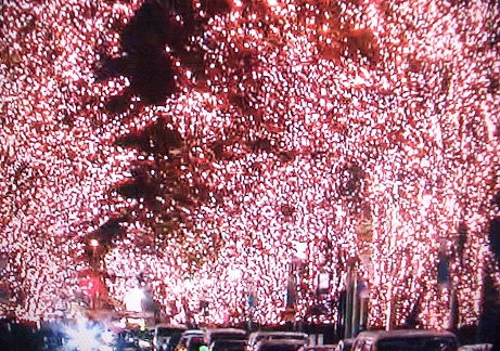 夜間で寒かったせいもあり。人通り少なくカラフルなイルミネーション各地で見られますが