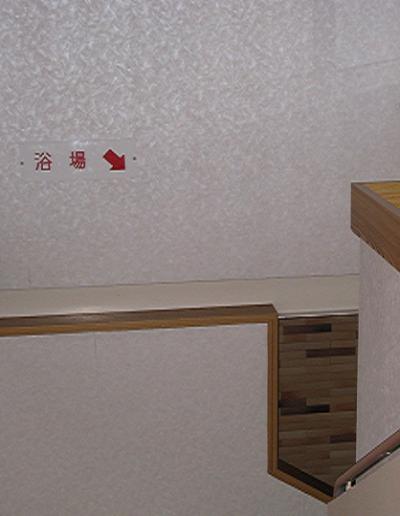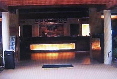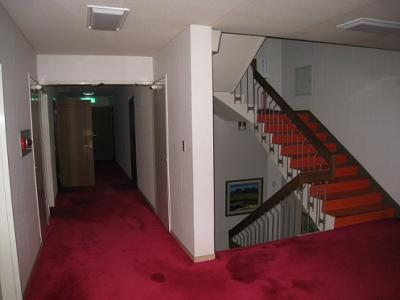 写真階段の左側がフロントです