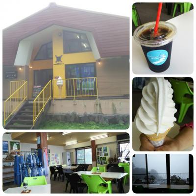 チケットを購入し、山頂へ雨かと思い気や曇り、ただガスっていて山頂から