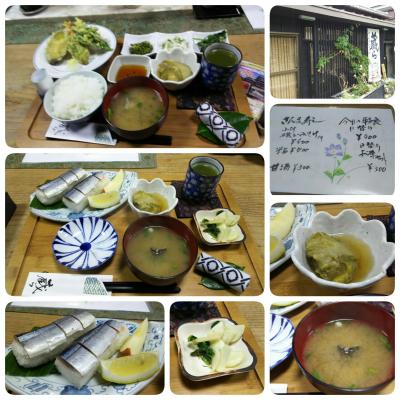 定番のさんま寿司(小鉢、磯ものみそ汁付)(写真中段)