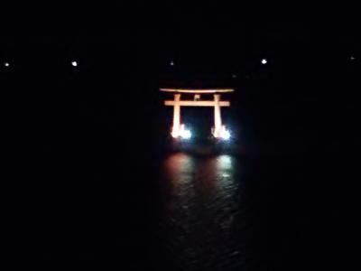 部屋は広くて、また部屋からは海が見え、目の前に鳥居、朝夕と食事はバイキングで
