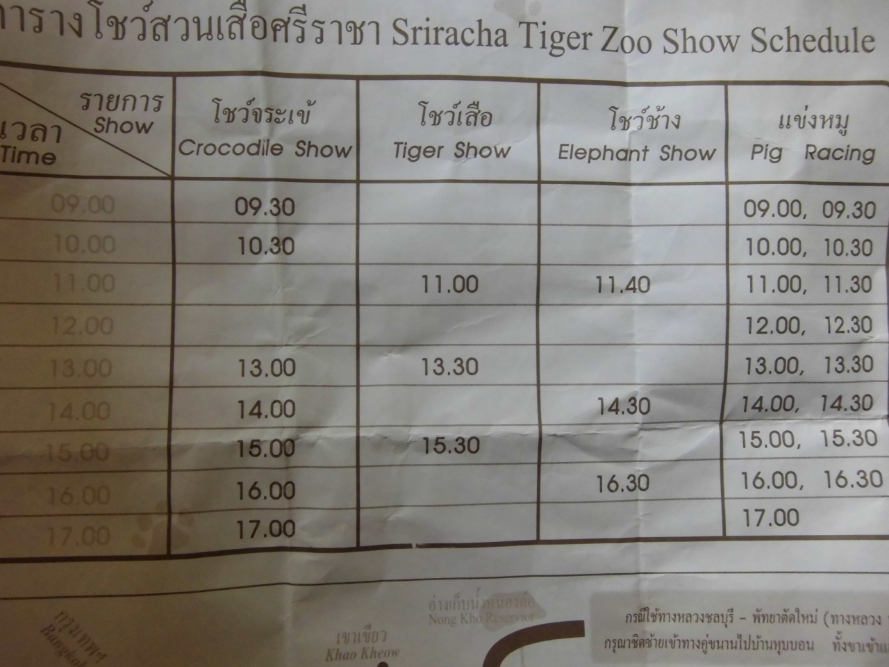 AM10時PM13時PM15時に行けば三大ショー(ワニ、トラ、ゾウ)