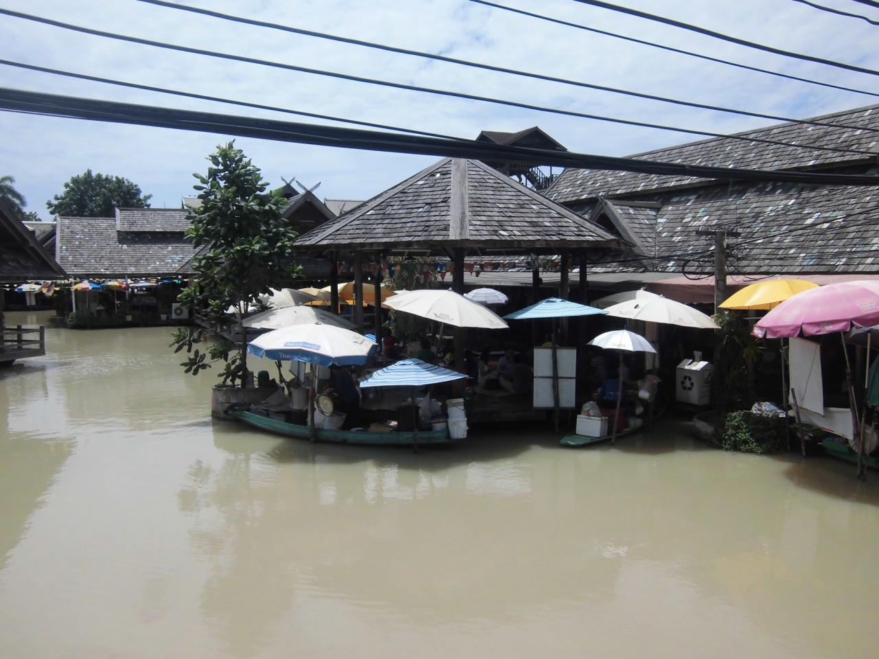 水上マーケットに行ってきました。平日だったからか?もしかしたら休日だったとしてもガラガラかも・・・それは分かりませんが、そのためかも知れませんが水上で商売をしている船はありませんでした。ほとんど岸につけて商売していました。