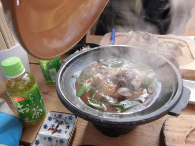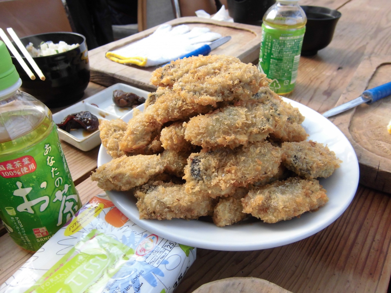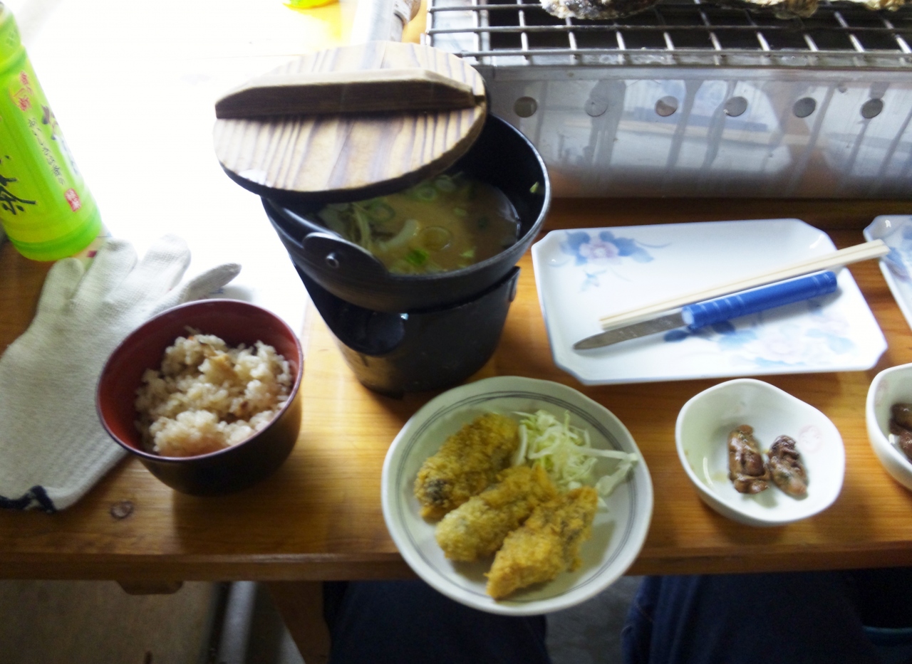(食べ放題) 後はカキ飯(おかわり1杯無料)・カキフライ(3個)・カキ鍋(カキ鍋と言うより牡蠣の味噌汁?)・カキの佃煮が付いていました。