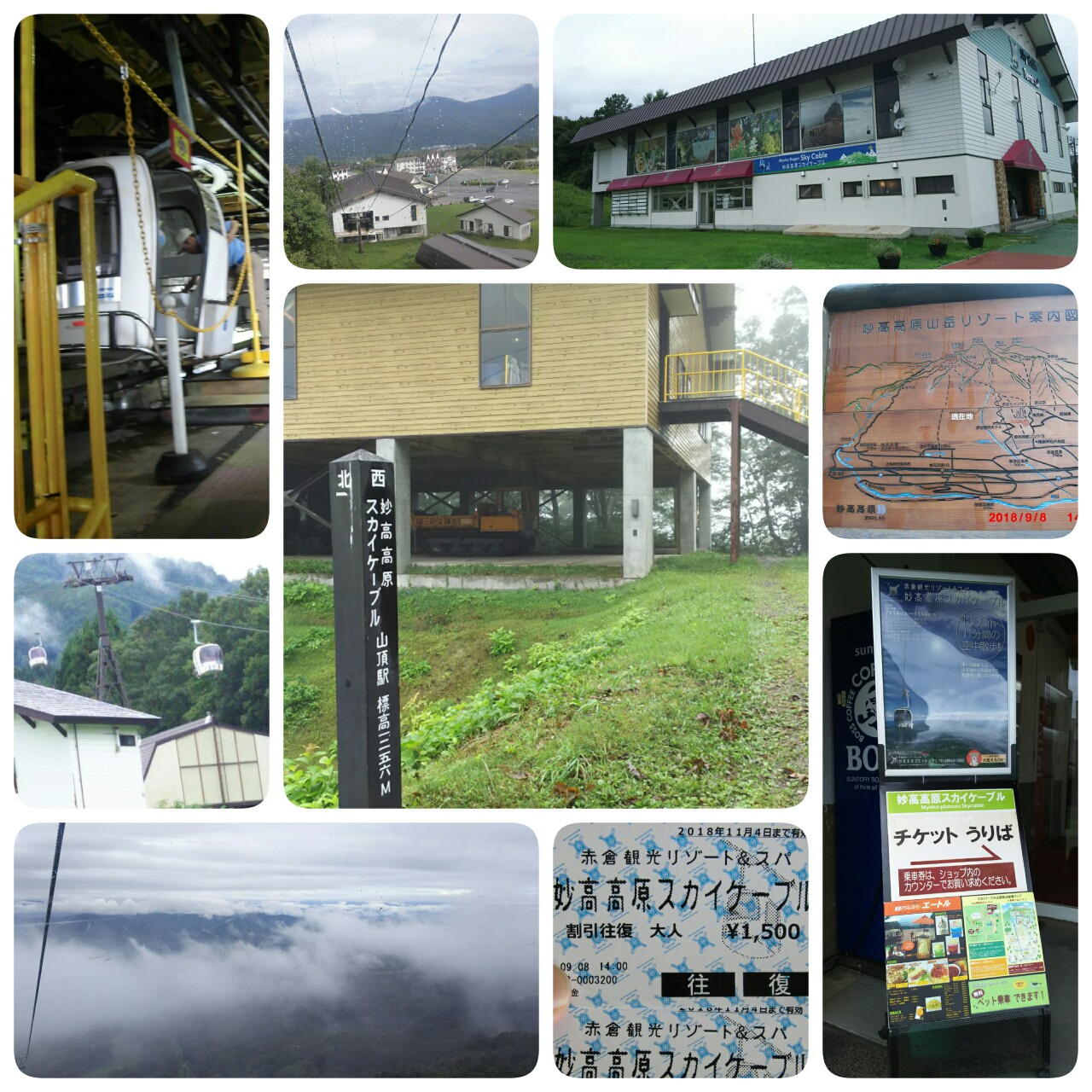 妙高高原スカイケーブル乗り場に山頂までの往復1800円(割引券で1500円)