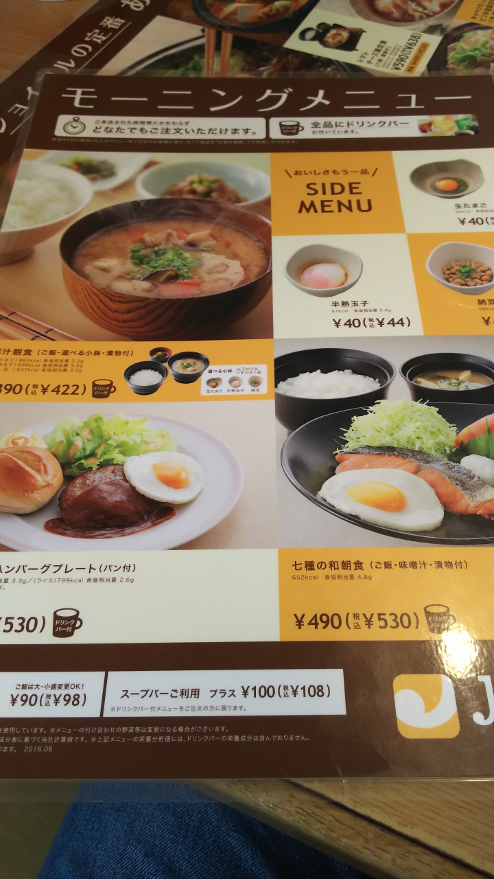 ショイフルで朝食、Mエッグ(ライス)Mオムレツ(パン)を注文(各390円税抜)