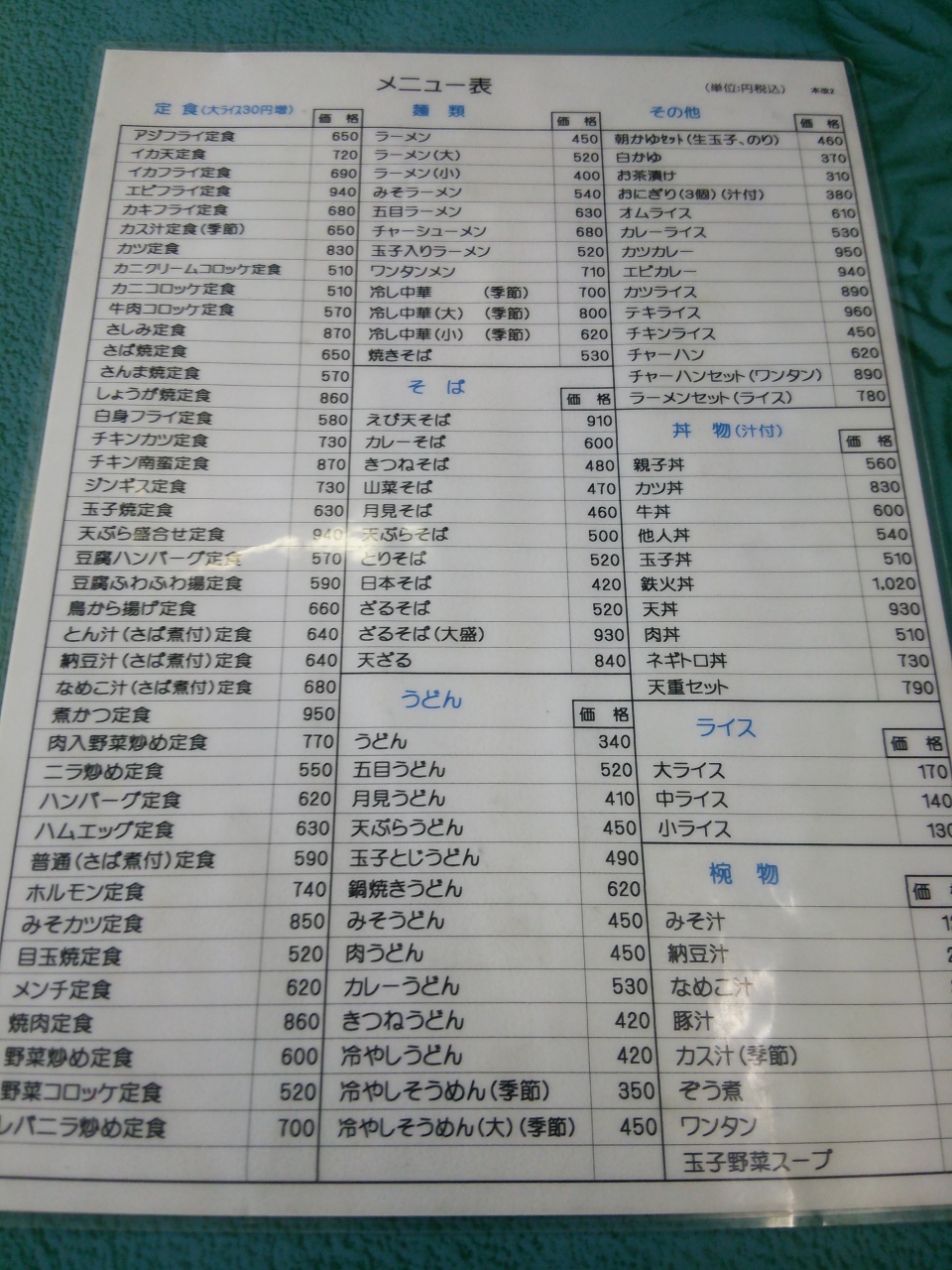 一般的な大衆食堂と言った感じの食堂。驚きはメニューの多さ。