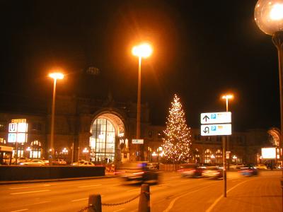 旧市街から宿へ移動。ニュルンベルク中央駅前のクリスマスツリー