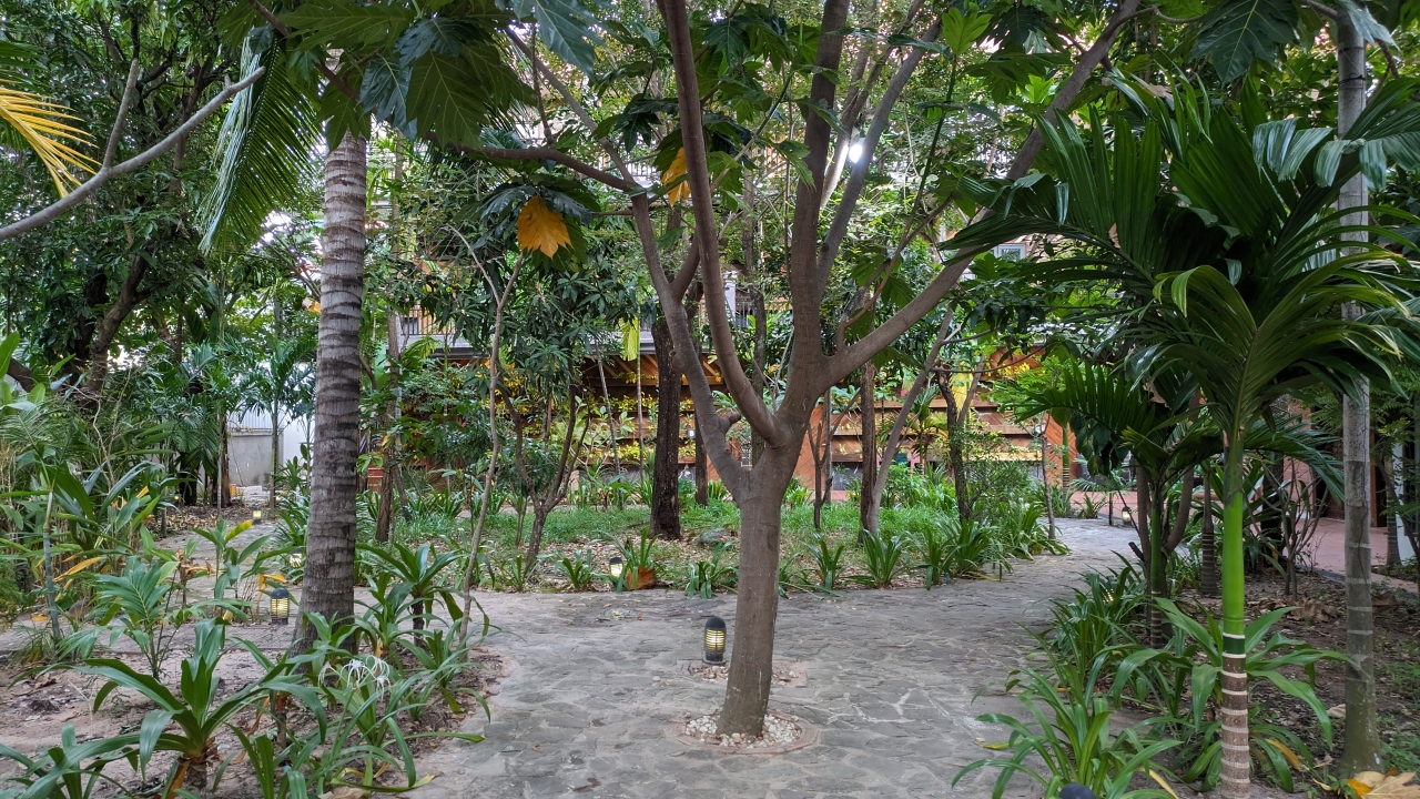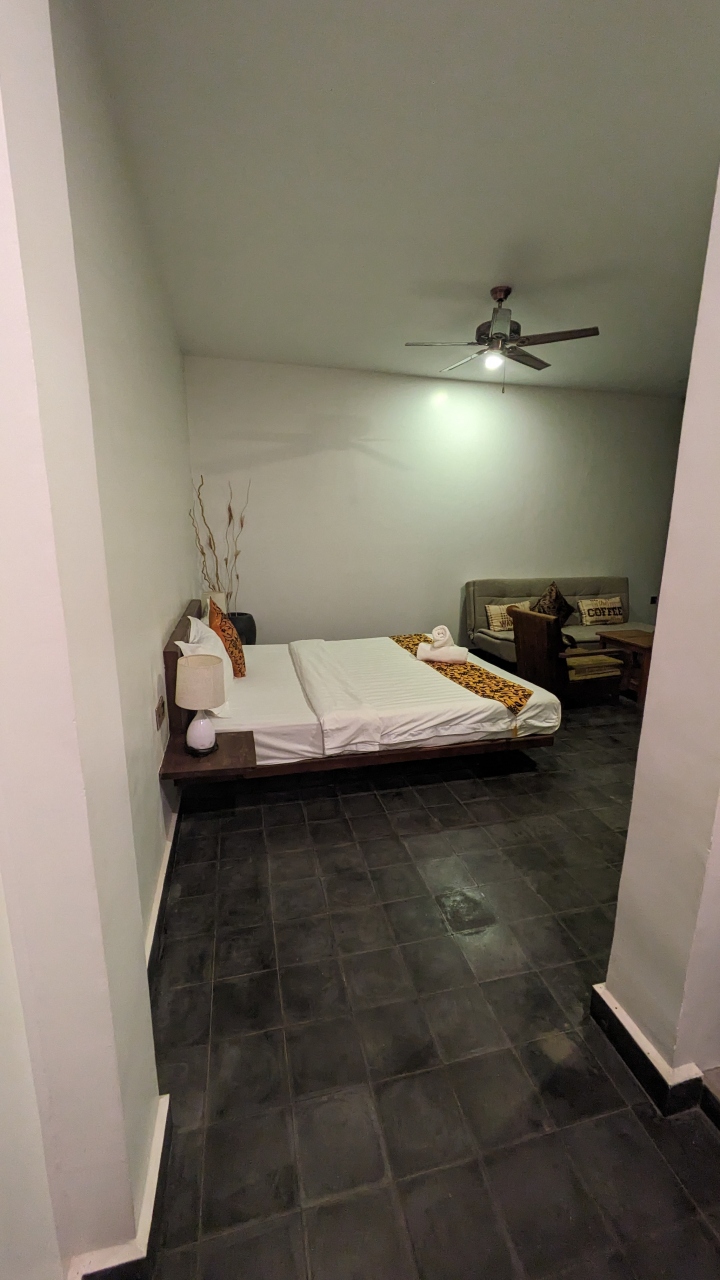 未舗装の道を進みながらようやく到着、チェックイン後に案内されたのは1階の部屋、もともと2階以上を要望していたので変更をお願いすると掃除していないとのこと。