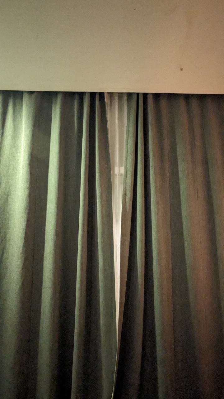 仕方ないのでカーテンを閉めようとするも、カーテンレールにランナーが大量に差し込まれていて、左右のカーテンがしっかり絡まず隙間ができるから蚊も外の光も入って来る。