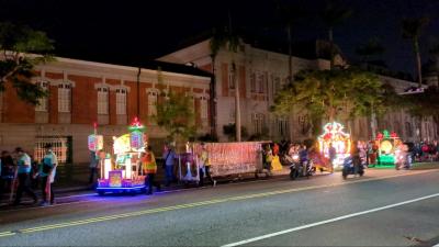 国立台湾文学館から行列の後をついていくと、途中から狭い府中街に入っていって開基永華宮に到着。