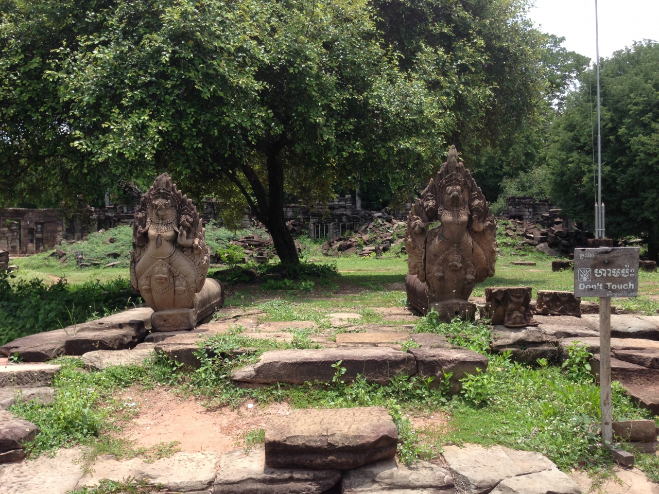 バンテアイチュマール内は一応整備はされていますが、雑草の生茂ったところや瓦礫を登っていくなら短パン、ゴムサンダルは避けた方がいいです。