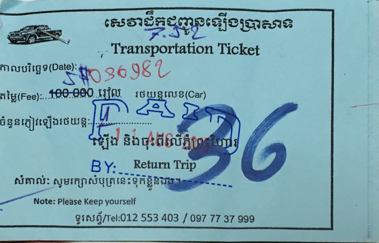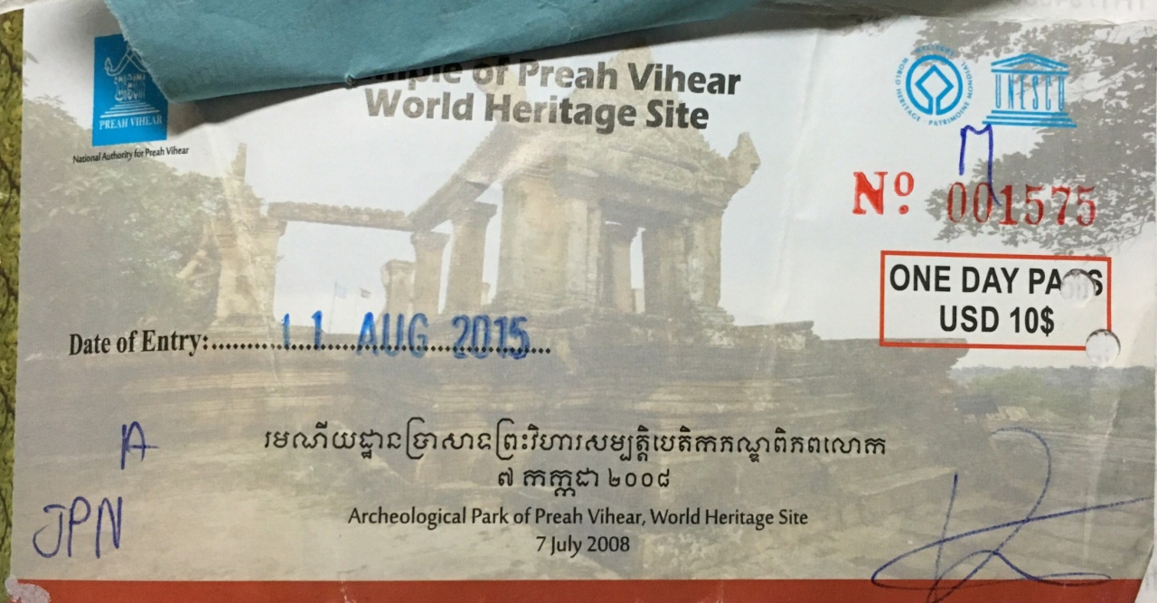 受付では、プレアヴィヒアまでのバイタク代5ドルと入場料10ドルを支払い、バイタクで登っていきます。
