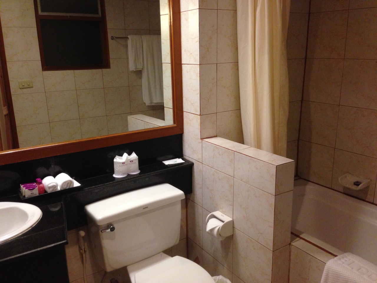シャワールームはバスタブ付き、アメニティは一般的なものです。