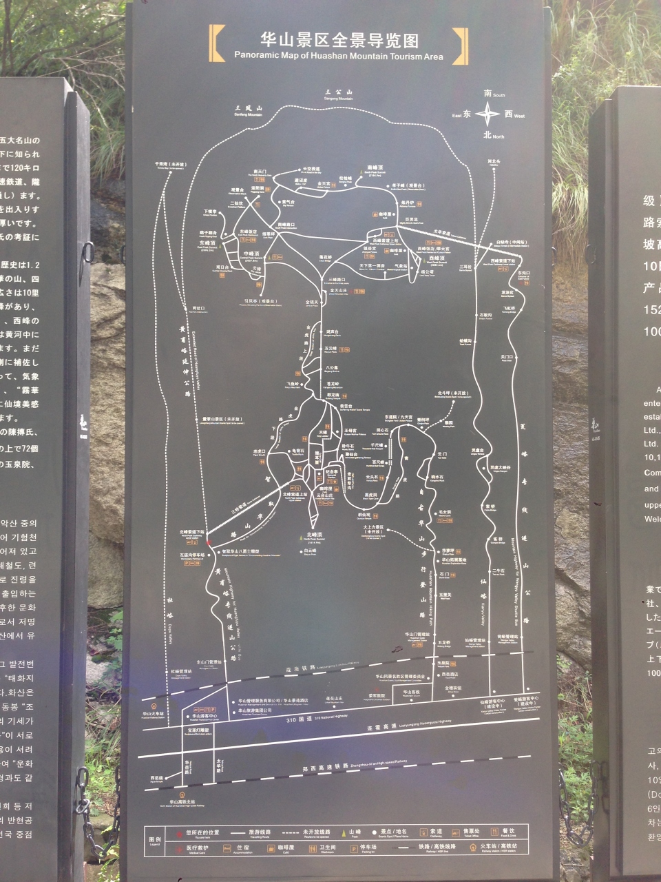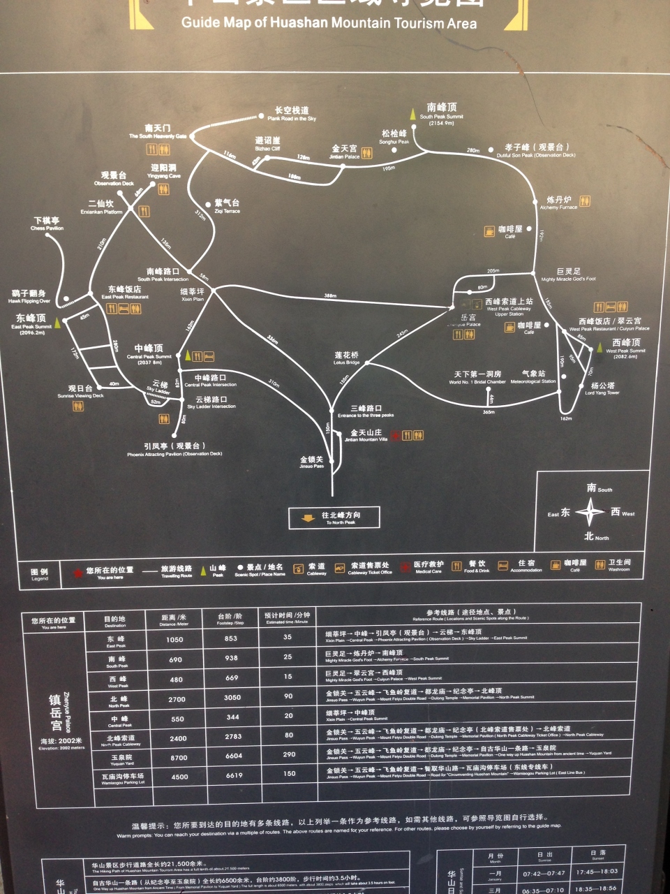 とにかく全ての峰を周りたいと言ったら、西峰にロープウェイで上り、西南東の順に峰周り、その後蒼龍嶺の横を下りていって北峰からロープウェイで降りてくる、というルートを紹介されました。