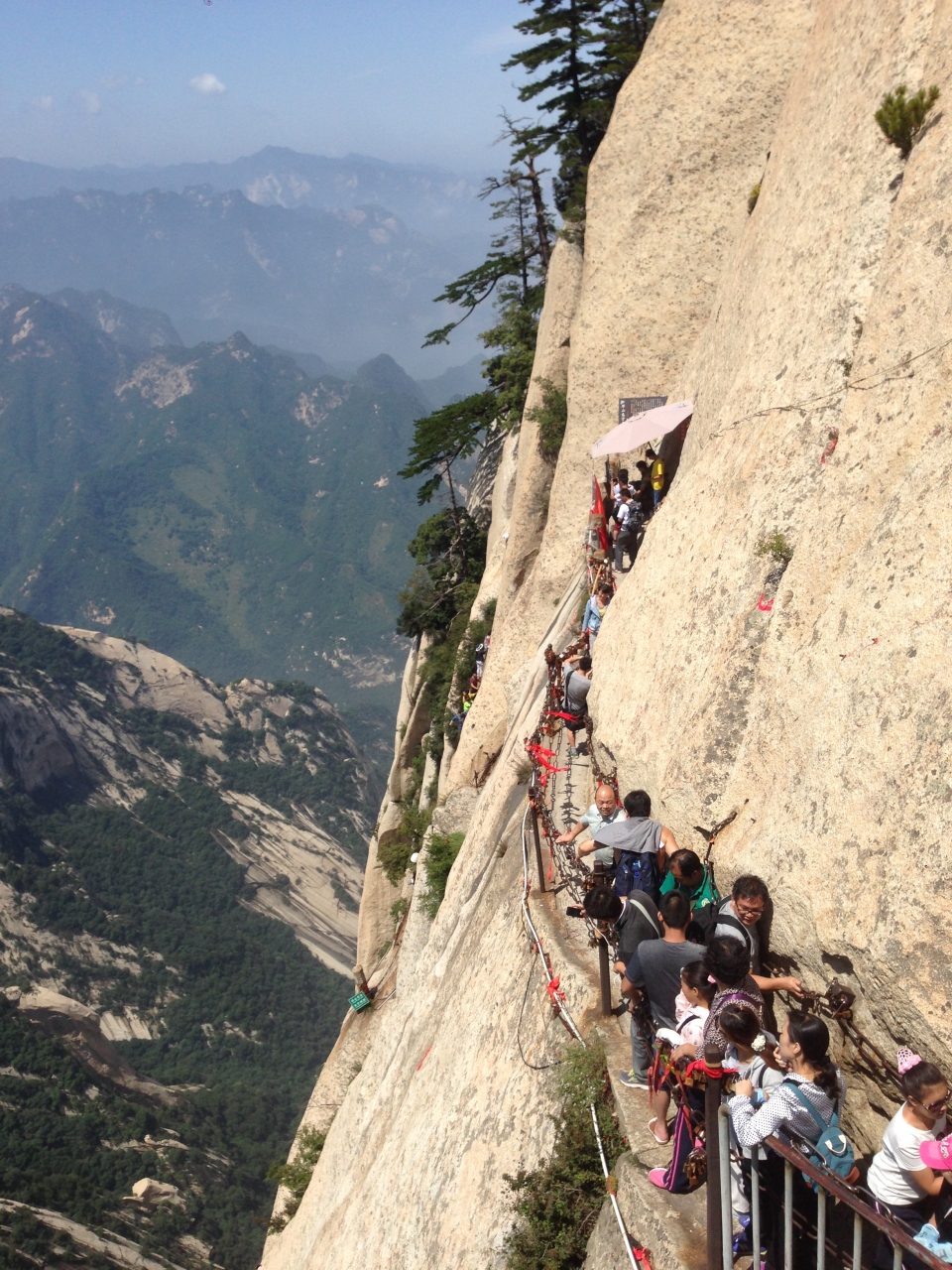 とにかくルートが決まったらチケット購入。必要なのは崋山入山票、インフォメーションセンター−ロープウェイまでのバスチケット×2(往復)、ロープウェイ×2(往)の5枚です。チケット売り場で並んでいるとダフ屋さんがいます。値段を聞いてみて決めるといいと思います。
