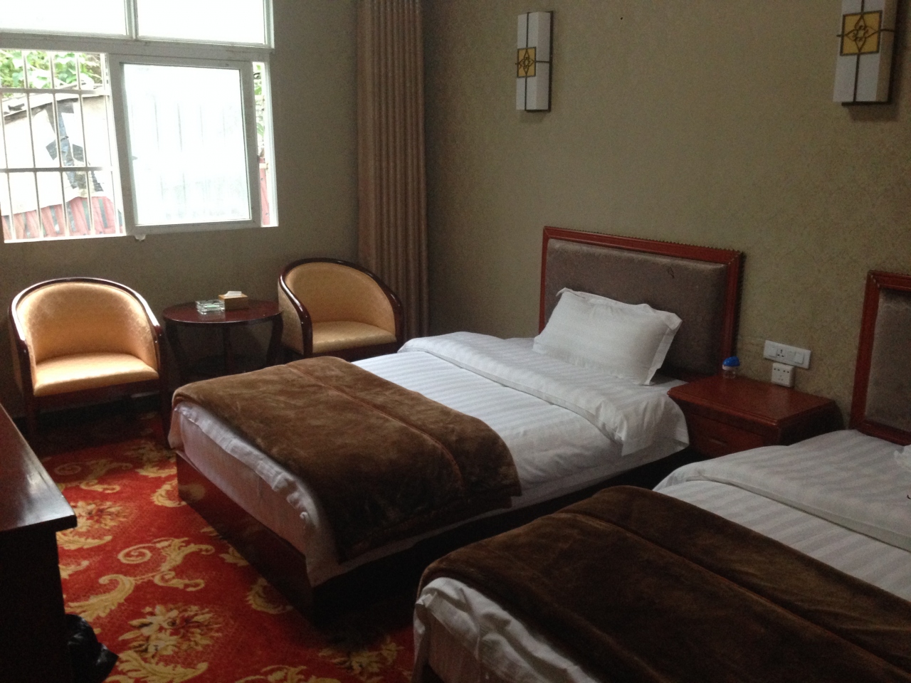 とりあえず重慶からバスを乗り継ぎ、遊客中心まで自力で来たがホテルの場所が分からない。インフォメーションセンターで聞いたが、300m位といっていたので周囲をウロウロ(結局デタラメだった)。最後はホテルに電話したが、よく聞き取れない。一応遊客中心に着いたということは伝わったみたいだが、本当に自力で来るのか何回も聞いてくるうちに電話が切れてしまう。そうすると車で迎えに来てくれた。大きな荷物を持った外国人だからすぐ見つけられたよう。ホテルは遊客中心から2キロくらいあるので、荷物持ったままでは厳しい距離だった。