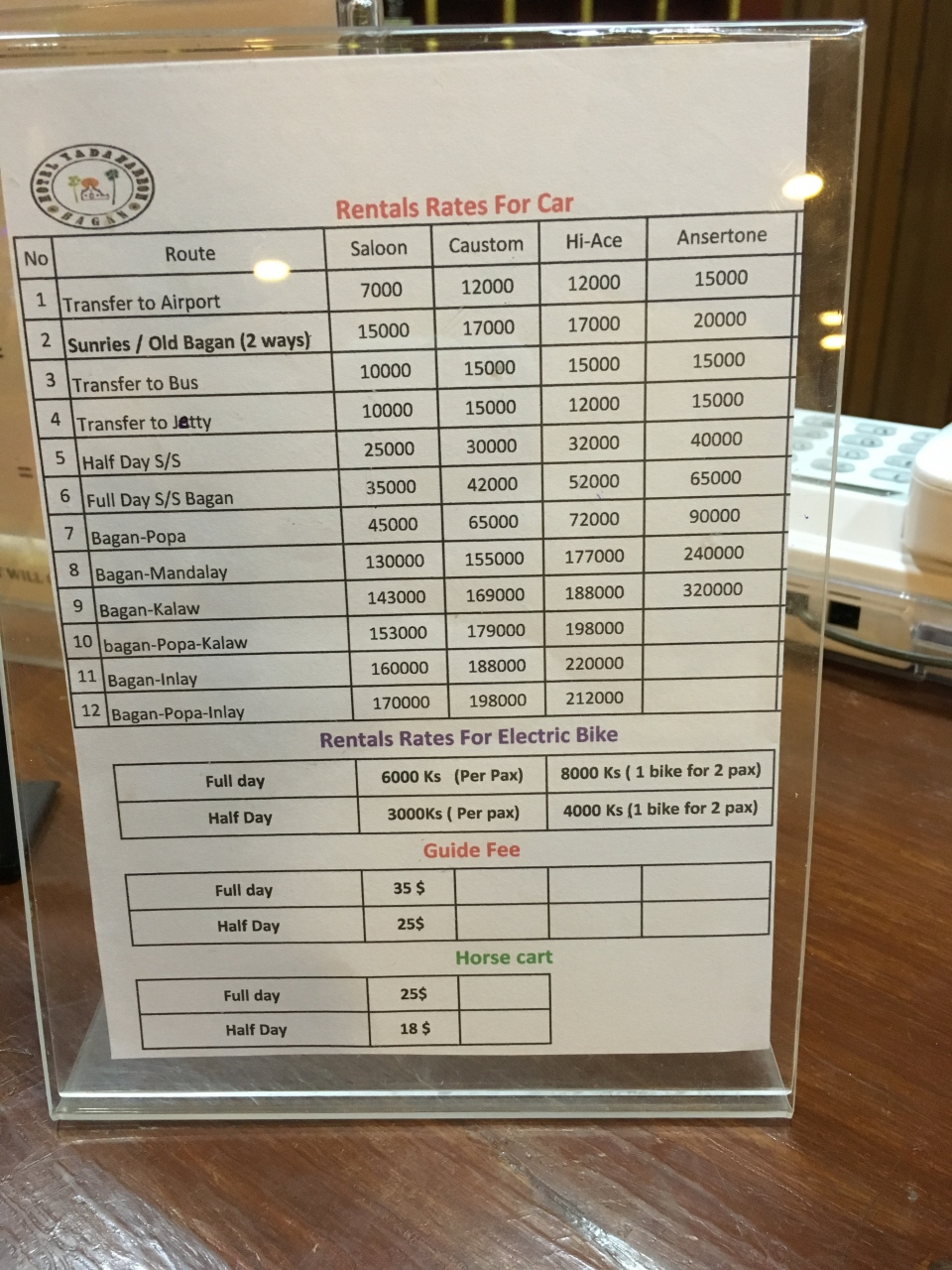 ホテルはニューバガンの東端に位置しており、日の出見学のためシュエサンドーパゴダに行くにはすぐ北側にあるダート道を利用すれば簡単です。- 旅行時期