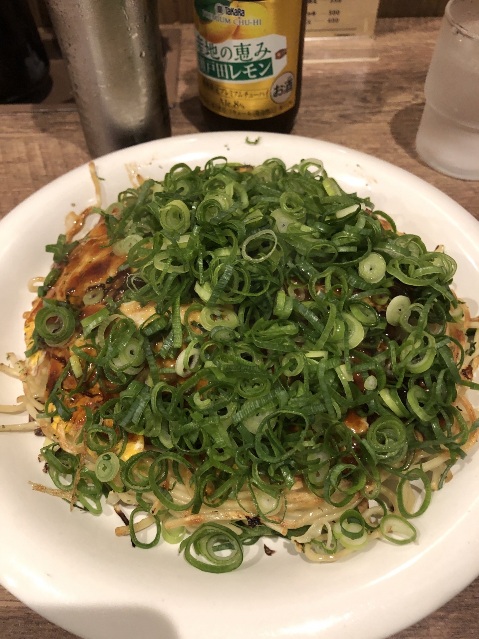 20分ほどで着席、すぐ提供されたチューハイは、お好み焼きが来る頃には氷が解けて薄味になってました。