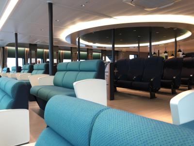 船内は進行方向のパノラマソファやごろ寝できるエリアもあって船旅を楽しむことができます。- 旅行時期