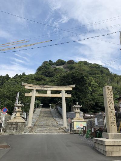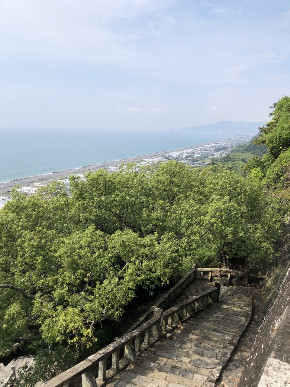 自転車で駿河湾沿いをサイクリングし、階段を登って参拝しました。