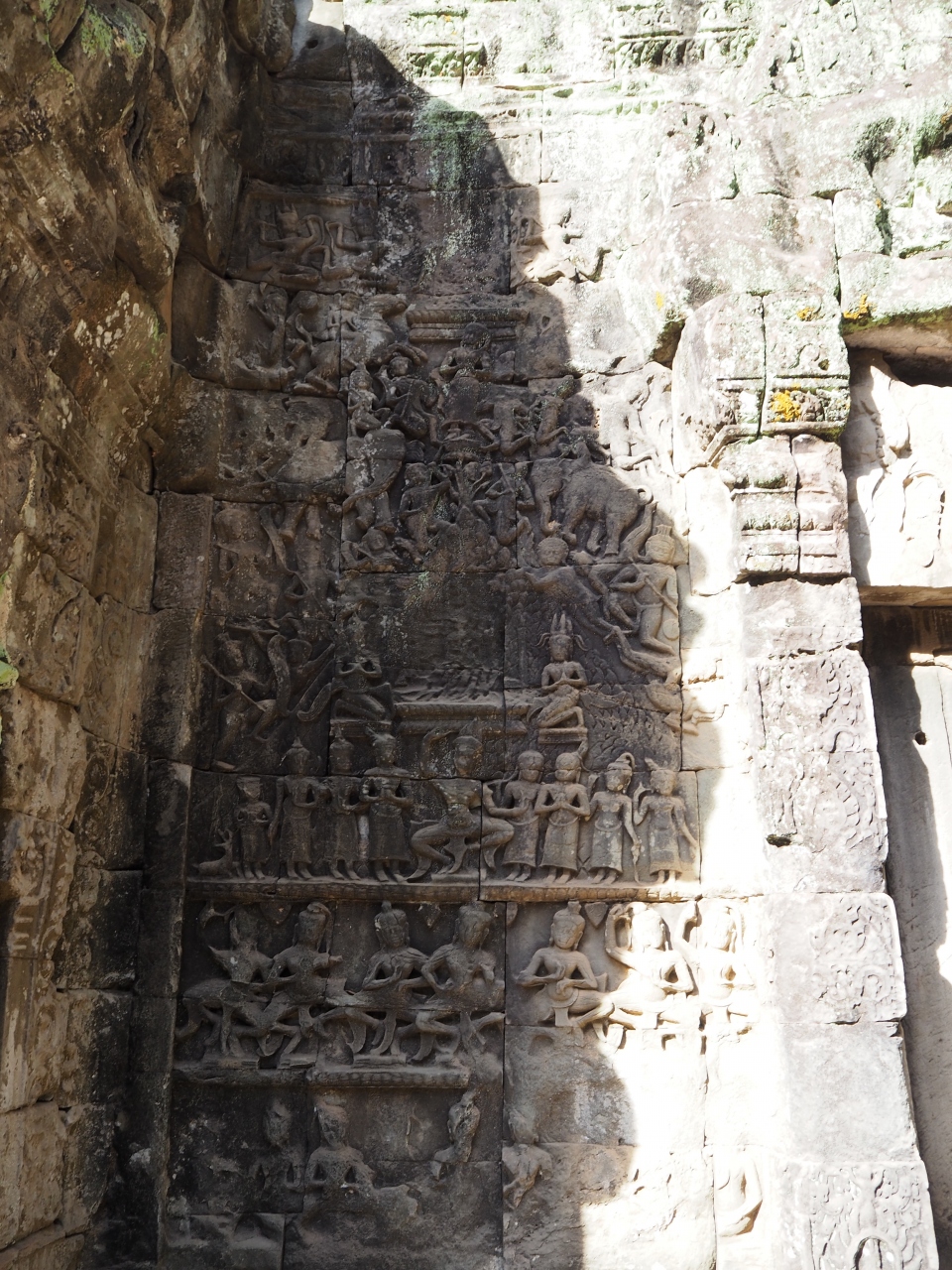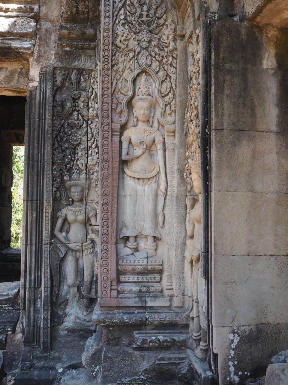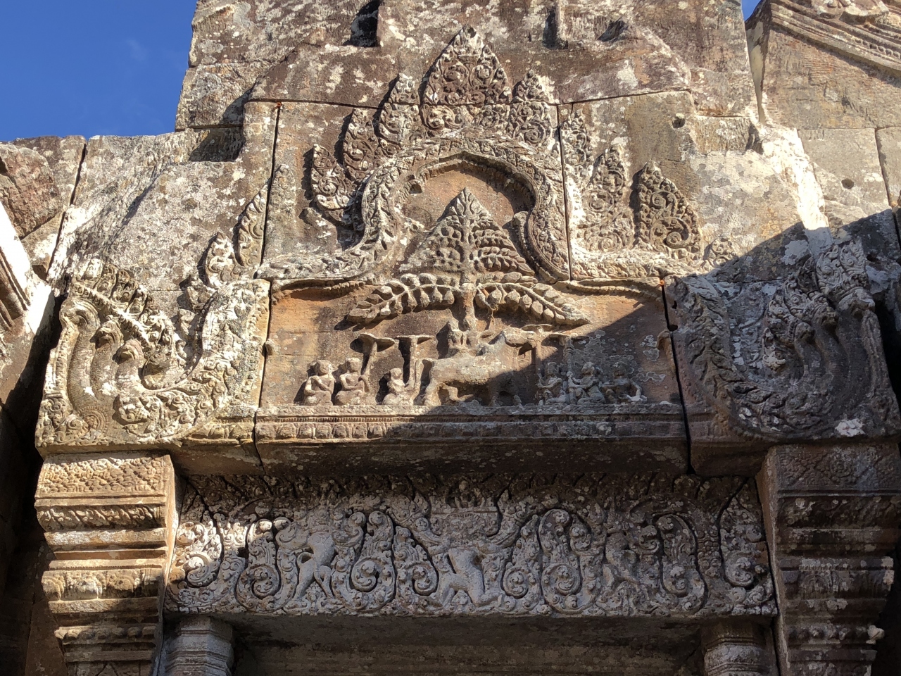 断崖絶壁に建立されたため眺望ばかりに注目が集まるが、アンコール朝の遺跡なのでいろいろなレリーフが見応えあります。