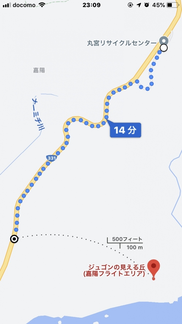 食後に車で向いましたが、グーグルマップで調べたルートは存在せず。