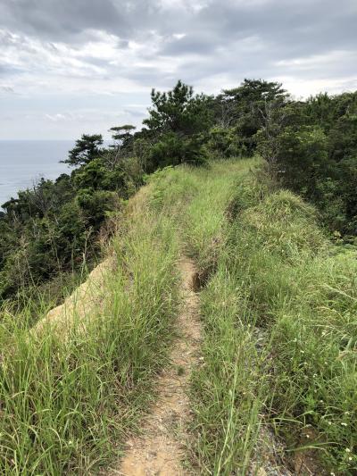 尾根伝いに雑草の生い茂る道を進むので、靴とパンツはしっかりしたものがいいと思います。
