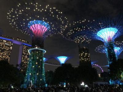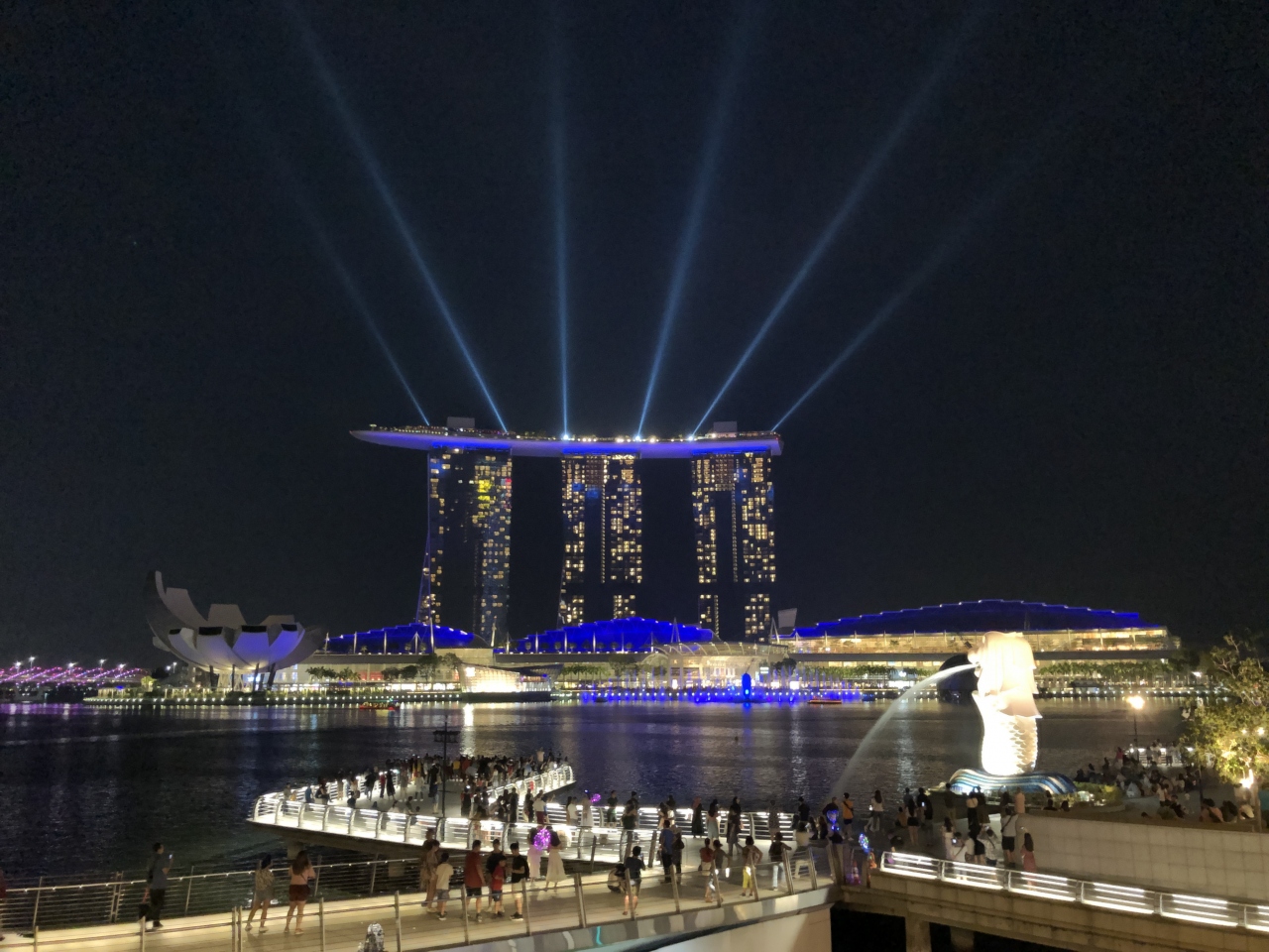 対岸のマーライオンのある場所からも見学しましたが、マリーナベイサンズもライトを発っしているのが分かっただけで、よく見えませんでした。- 旅行時期