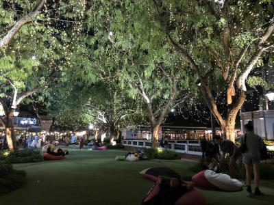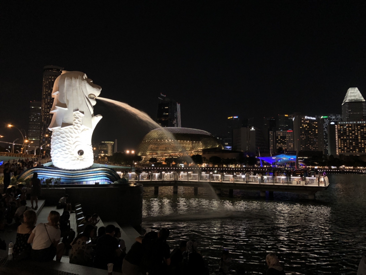 マリーナベイサンズのショーが終わり、マーライオンを目指して歩いてみました。