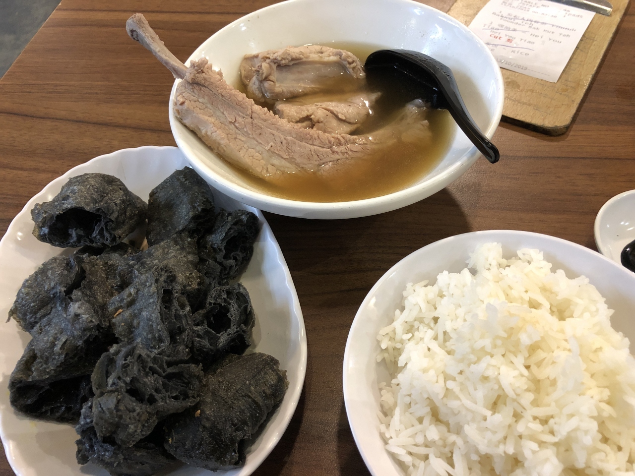 パクテーは薬膳スープなはずだが、ただの豚の茹で汁でとんでもなく味がなく、はっきり言ってまずい!